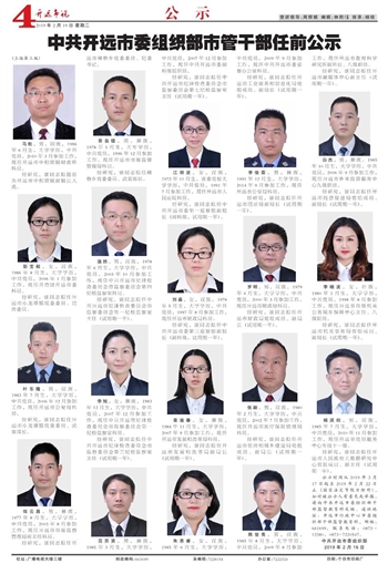 3、及時關(guān)注:干部任免信息更新較快,請務(wù)必及時關(guān)注以便獲取最新的信息。